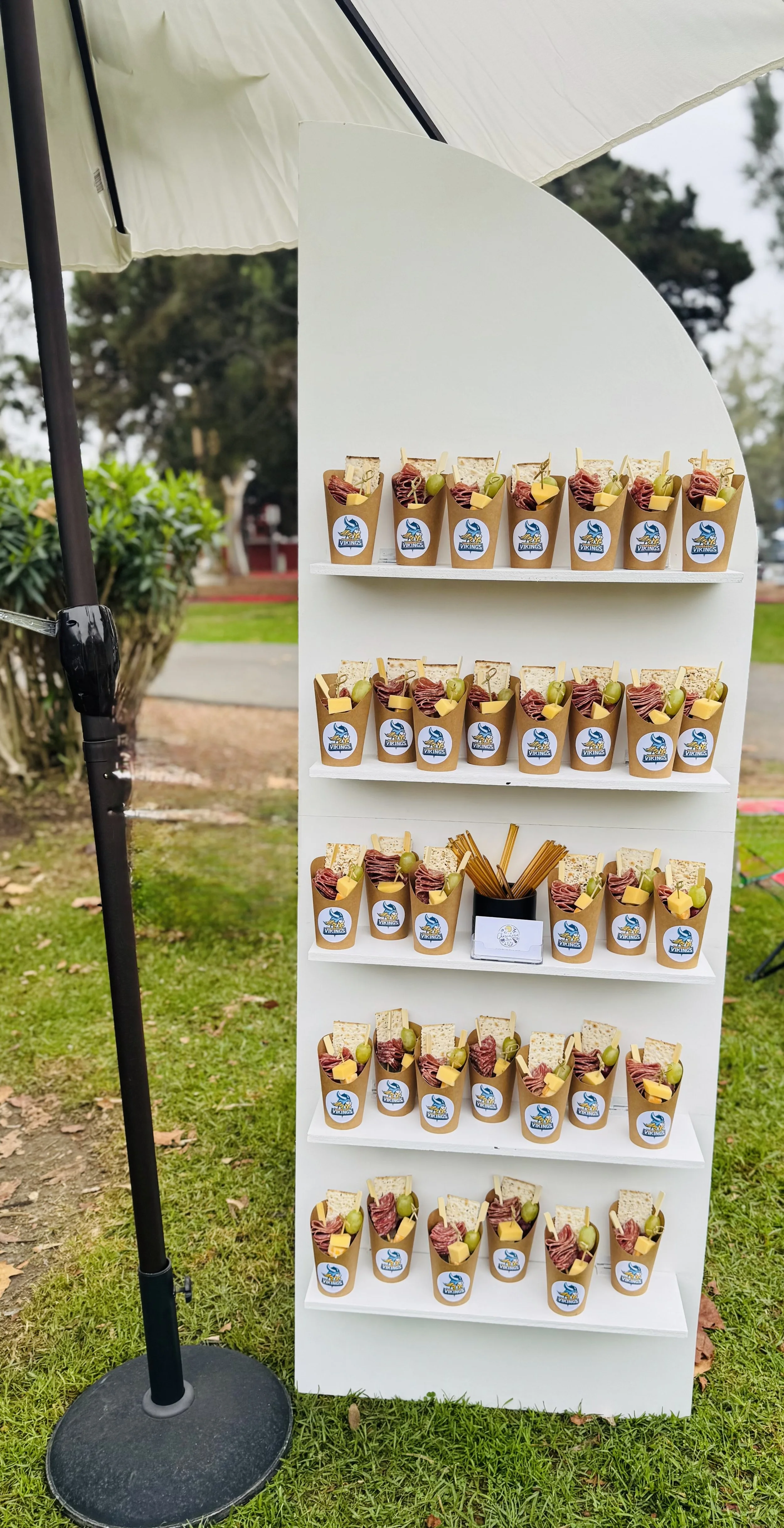 Rent our charcuterie wall for $150, or rent it for FREE when you order 40 or more charcuterie cups, domes, or mini boxes!